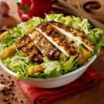 ترکیبات : کاهو – زیتون – فیله گریل – نان تست گریل – پودر پنیر پارمسان – سس مخصوص