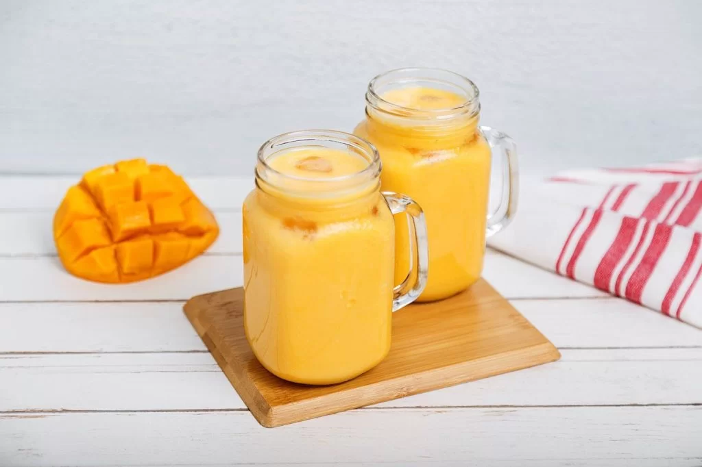 ترکیبات : بستنی – شیر – سیروپ انبه
