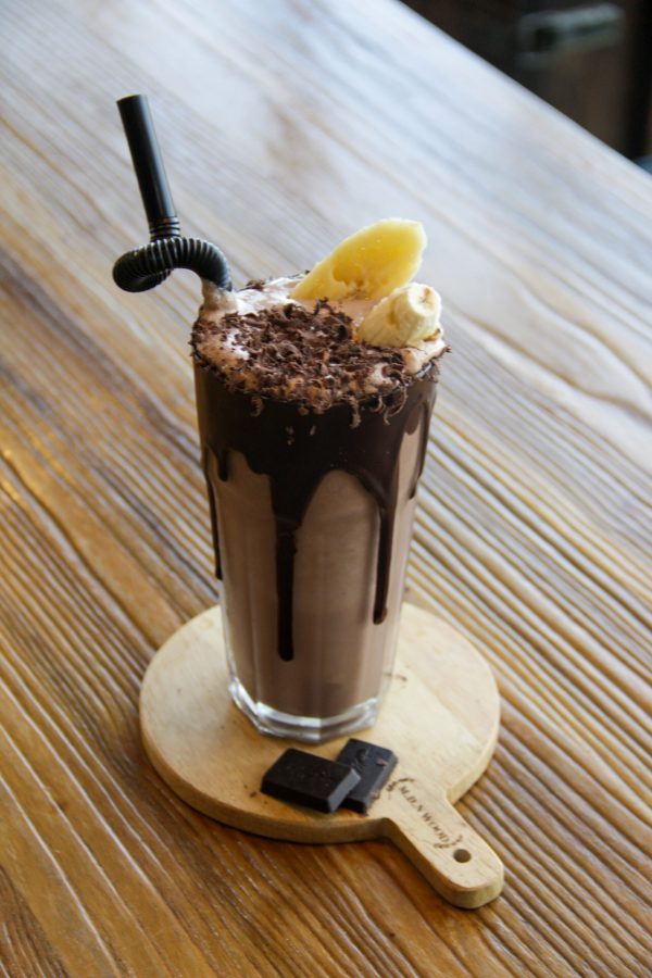 ترکیبات : بستنی – شیر – سیروپ شکلات – موز